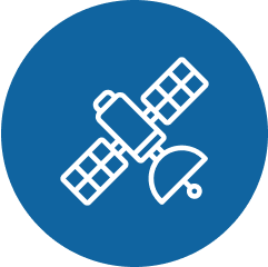 Data is transmitted via satellite and radio